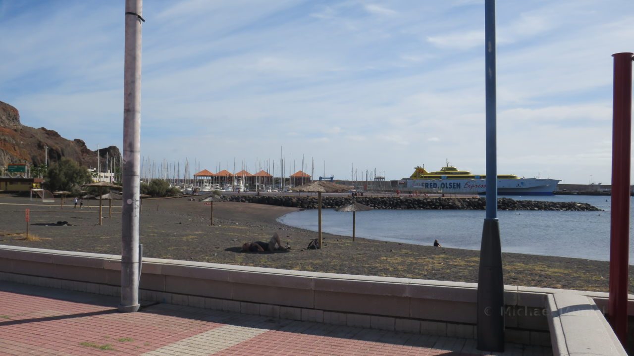 Der Stadtstrand mit Hafen und Fähre nach Teneriffa