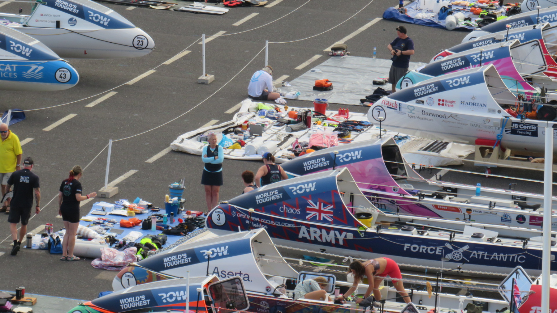 Seit ein paar Tagen haben wir vor allem abends, wenn wir essen waren, sehr viele Menschen Shirts mit Werbung für ein Ruderrennen getragen haben. Etwas Recherche brachte uns die Erkenntnis, dass es sich hierbei um World’s Toughest Row handelt. Das ist ein Ruderrennen,  bei dem Rudrboote mit einem bis vier Personen von La Gomera nach Antigua in der Karibik rudern.  Das sind knapp 5000 km und die Boote brauchen zwischen 30 und 90 Tagen für die Überquerung des Atlantik.