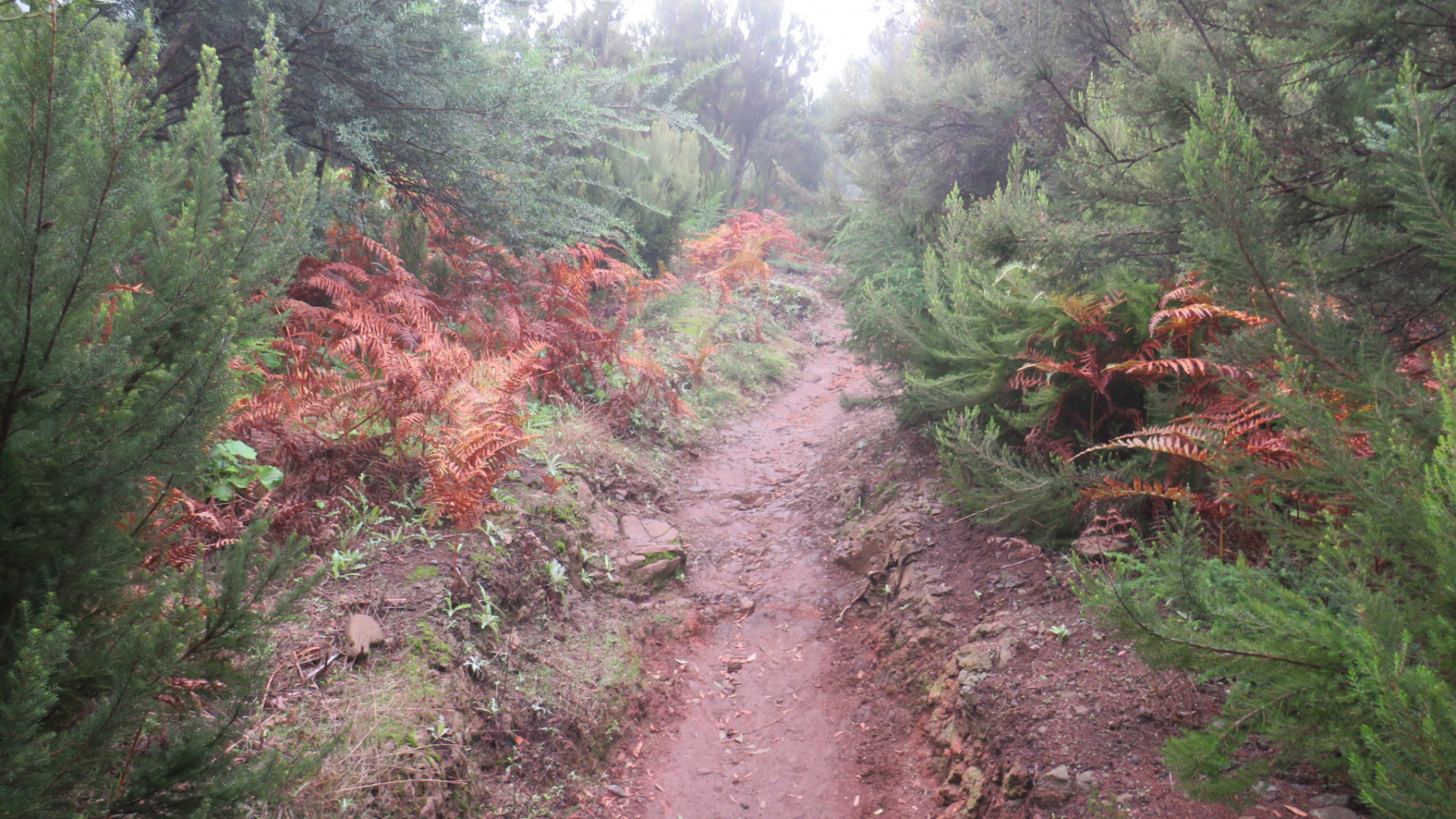 Also schnell noch die Strickjacke angezogen und los ging es. Es gibt hier ausgeschilderte Wanderrouten, wir entschieden uns, die Route 17 zu gehen, ein etwa 4,6 km langer Rundwanderweg. Es ging sofort relativ schnell bergauf, teilweise über in den Boden eingelassene Stufen, teilweise über Fels. Nach dem ersten Anstieg dachten wir kurz, wir wären da, aber Pustekuchen, es ging nach ein paer Meter weiter hoch. Zwar ging es kurz danach auch mal nach einige Höhenmeter runter, aber gleich wieder ein mehrfaches bergab. Da wir leider in den Wolken waren, war die Aussicht leider nicht so doll.
