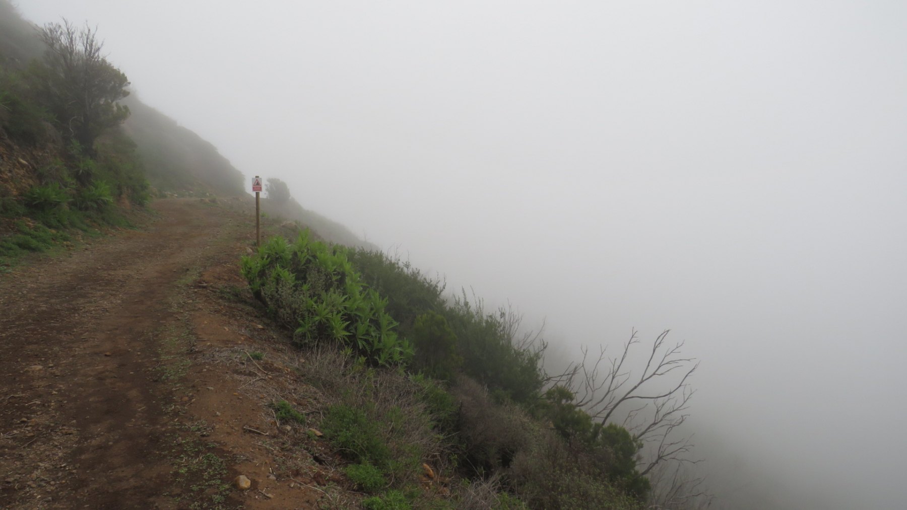 Der Alto de Garajonay ist der mit 1487 m der höchste Berg von La Gomera. Bei gutem Wetter hat man von hier wohl einen super Blick auf Teneriffa mit den Teide, La Palma und auch El Hierro.  Angeblich kann man bei richtig gutem Wetter wohl auch Gran Canaria sehen können. Die beste Zeit dafür ist zwischen April bis Oktober. Im anderen Zeitraum können die Passatwolken einen den Blick hier leider versperren. Also ist Anfang Dezember eigentlich ein schlechter Zeitpunkt. Die letzten Tage waren in den Bergen Meer Wolken zu sehen, also waren wir frohen Mutes und fuhren gegen Mittag los. Leider verschlechterte sich das Wetter und als wir im Nationalpark ankamen waren wir in den Wolken.