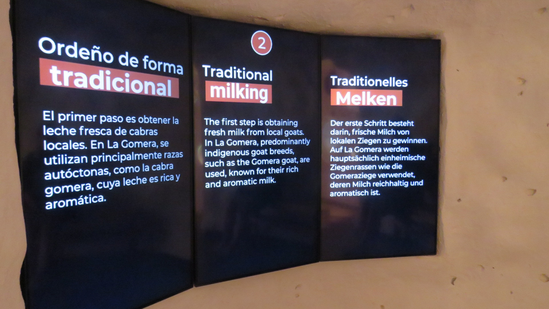 Der Eintritt war zu unserer Überraschung kostenlos. Im Museum kann man die Geschichte der Käseherstellung auf La Gomera kennenlernen, die Besonderheiten wie Silbo, die Pfeiffsprache der Hirten. Wir beide fanden die Ausstellung super schön gemacht und interessant. Neben vielen Exponaten mit Bezug zur Käseherstellung gab es auch eine Videoinstallation,  bei der man alles zur Herstellung von Ziegenkäse lernen kann, und das ganze in drei Sprachen: spanisch, englisch und deutsch.