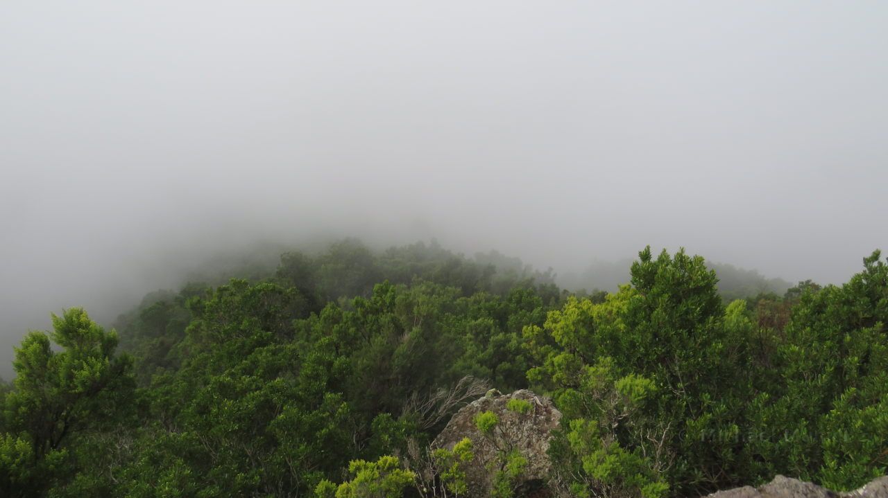 Angekommen beim Mirador stellten wir fest, dass wir hier in den Wolken sind. Also hielten wir an dem Parkplatz und machten uns auf dem Weg zum Mirador. Leider hatten wir keinen schönen Ausblicküber El Golfo. Aber die Wolken,  die hier teilweise kondensieren und durch die Felswand nach oben steigen sahen sehr faszinierend aus.