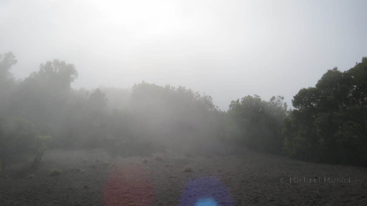 Angekommen beim Mirador stellten wir fest, dass wir hier in den Wolken sind. Also hielten wir an dem Parkplatz und machten uns auf dem Weg zum Mirador. Leider hatten wir keinen schönen Ausblicküber El Golfo. Aber die Wolken,  die hier teilweise kondensieren und durch die Felswand nach oben steigen sahen sehr faszinierend aus.
